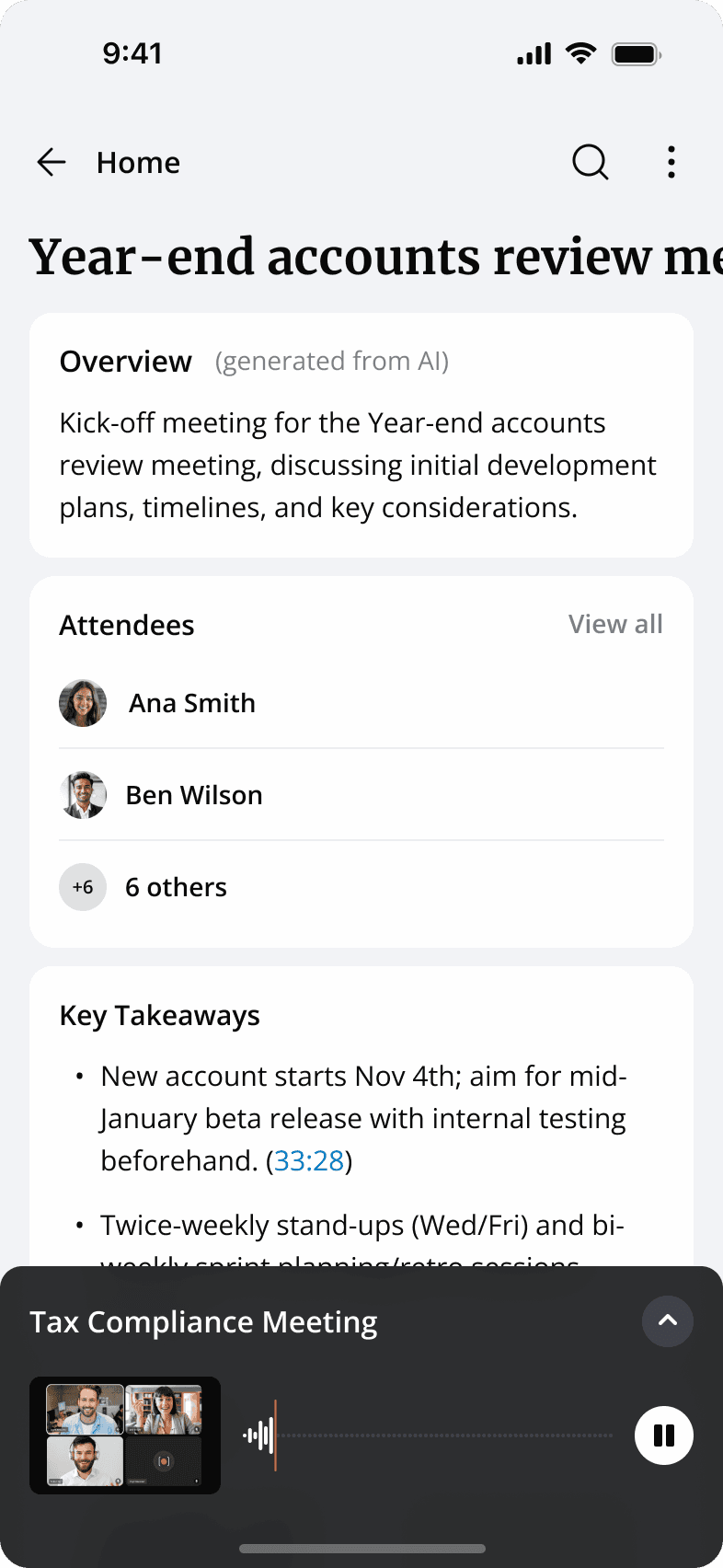 Vinyl Mobile App: Record in-person meetings, revisit past ones, and quickly find what you need with global search.